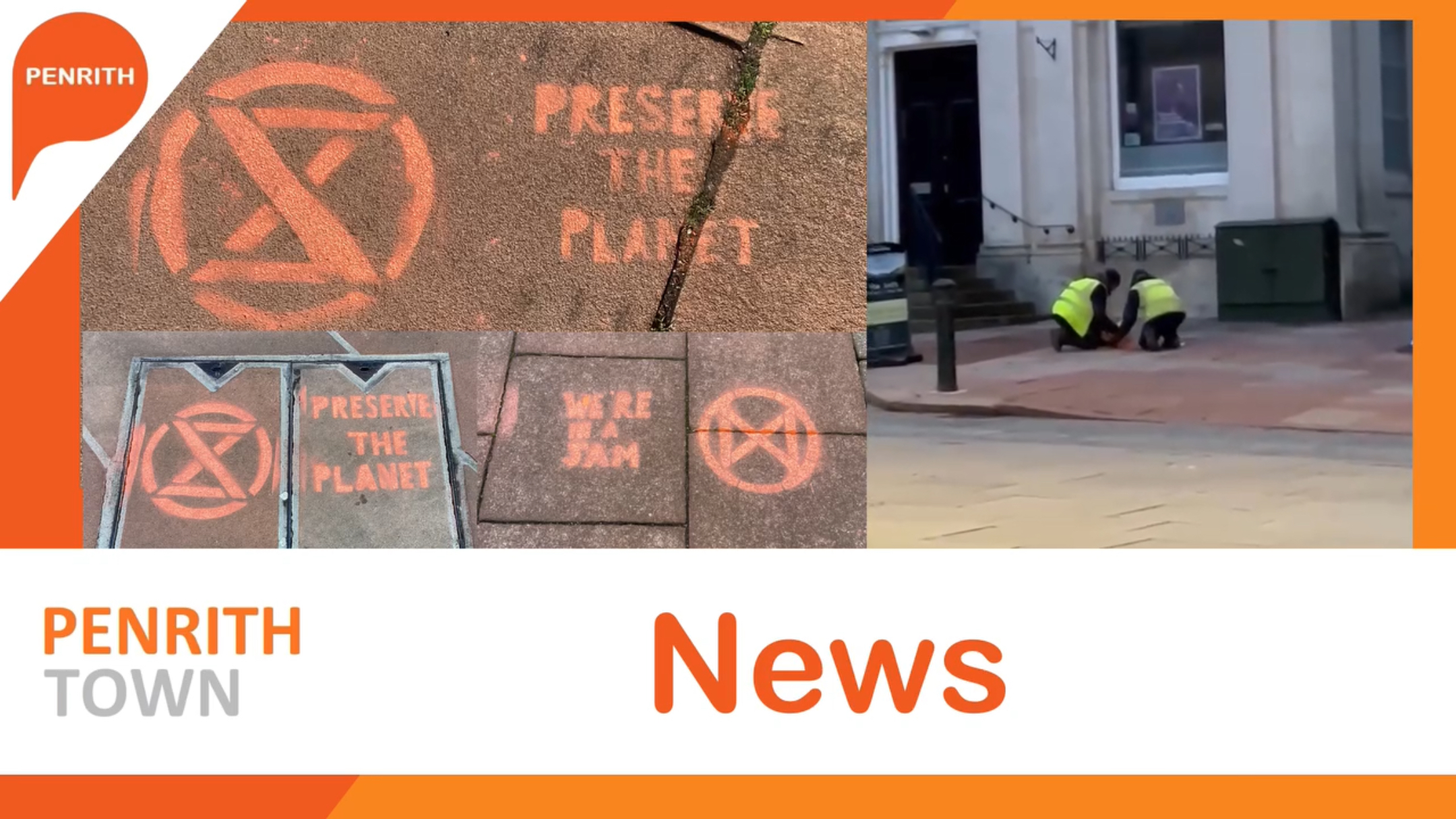 Police launched an investigation after orange logos were spray painted on the ground in Penrith town centre on Friday April 19.
