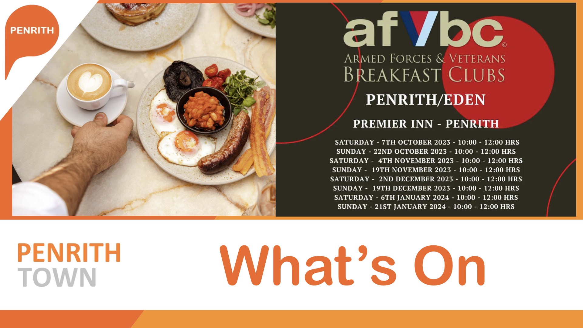 The Penrith and Eden Armed Forces Veterans Breakfast Club is holding its next breakfast this Saturday 7th October 2023, at the Penrith Premier Inn from 10am. One of the local organisers of the Penrith Armed Forces Veterans Breakfast Club Kerryanne Wilde said “Veterans, Military, Reservists & Dependants are all welcome to come along.”