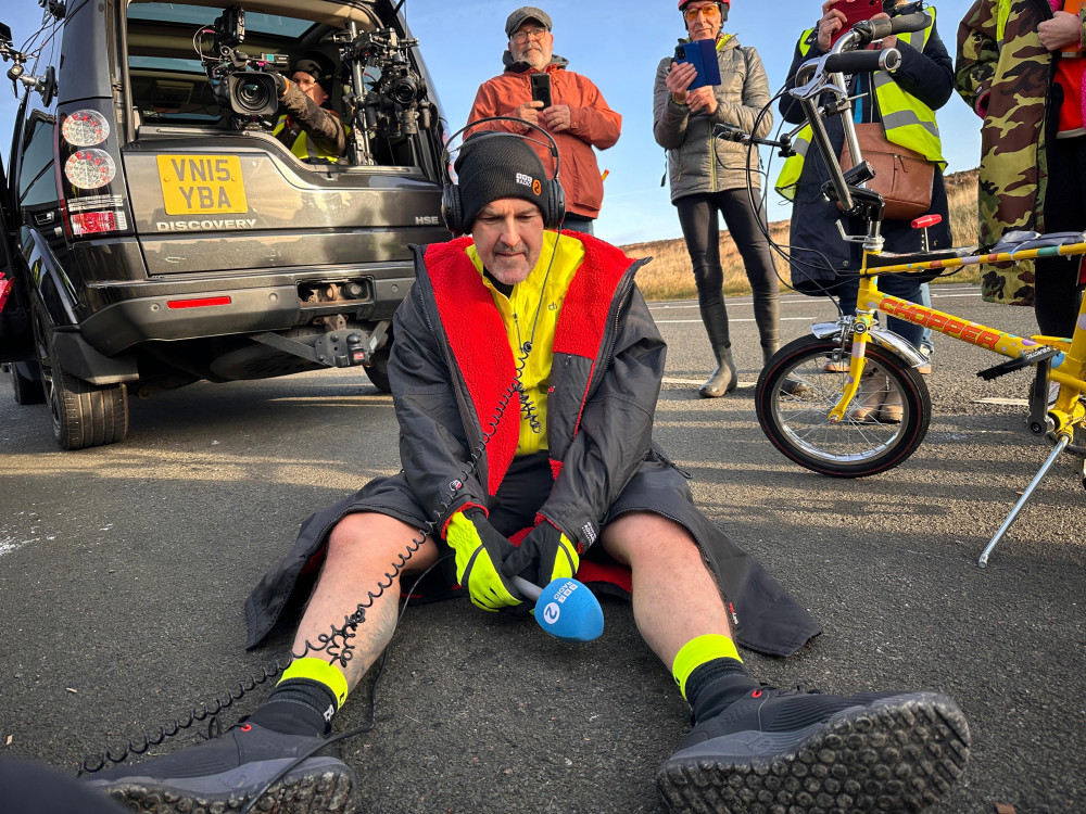 As he finished the day he was met with a warm greeting from primary school children in Ecclefechan and Jo Whiley on Radio 2 welcomed him in, chatting to him on air once he finished.