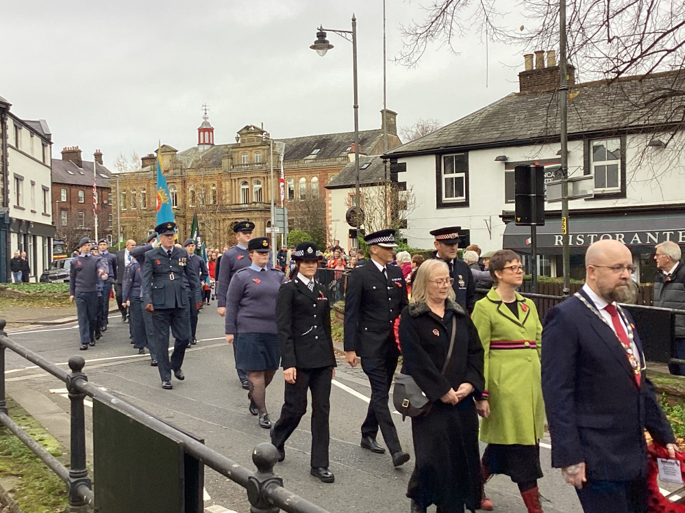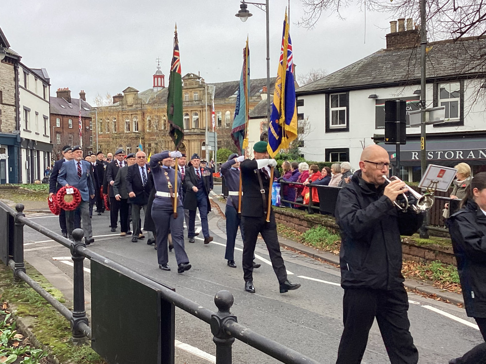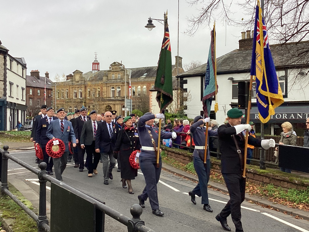 The annual Remembrance parade through Penrith took place on Sunday (10th November) afternoon with Penrith Town band leading the parade with members of the armed forces, emergency service, veterans along with members of the scouts and guides plus representatives from the council.