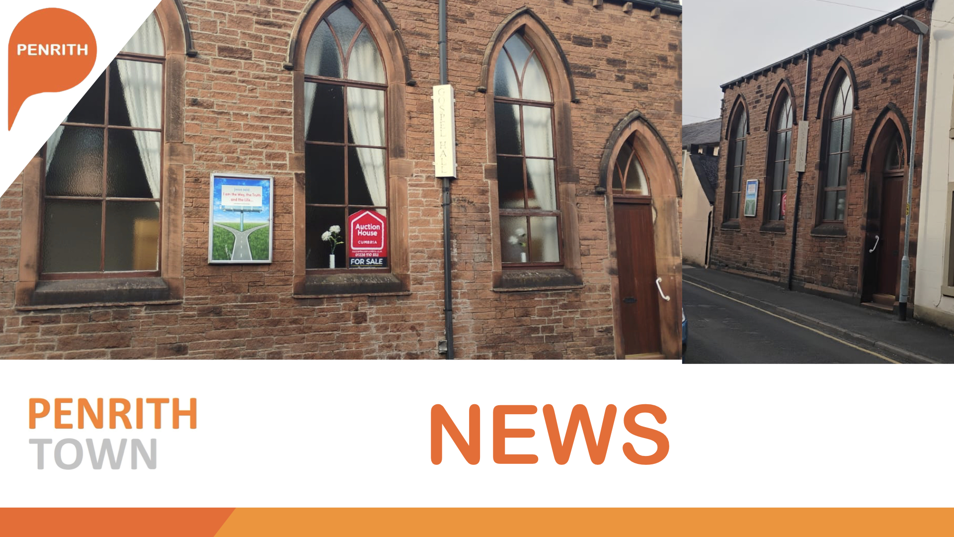 Built in the 1890s, the Gospel Hall is a modest late-19th-century sandstone church situated within the Penrith Conservation Area. Its design features traditional ecclesiastical elements of the period, including coursed stonework and large glazed window panels.
