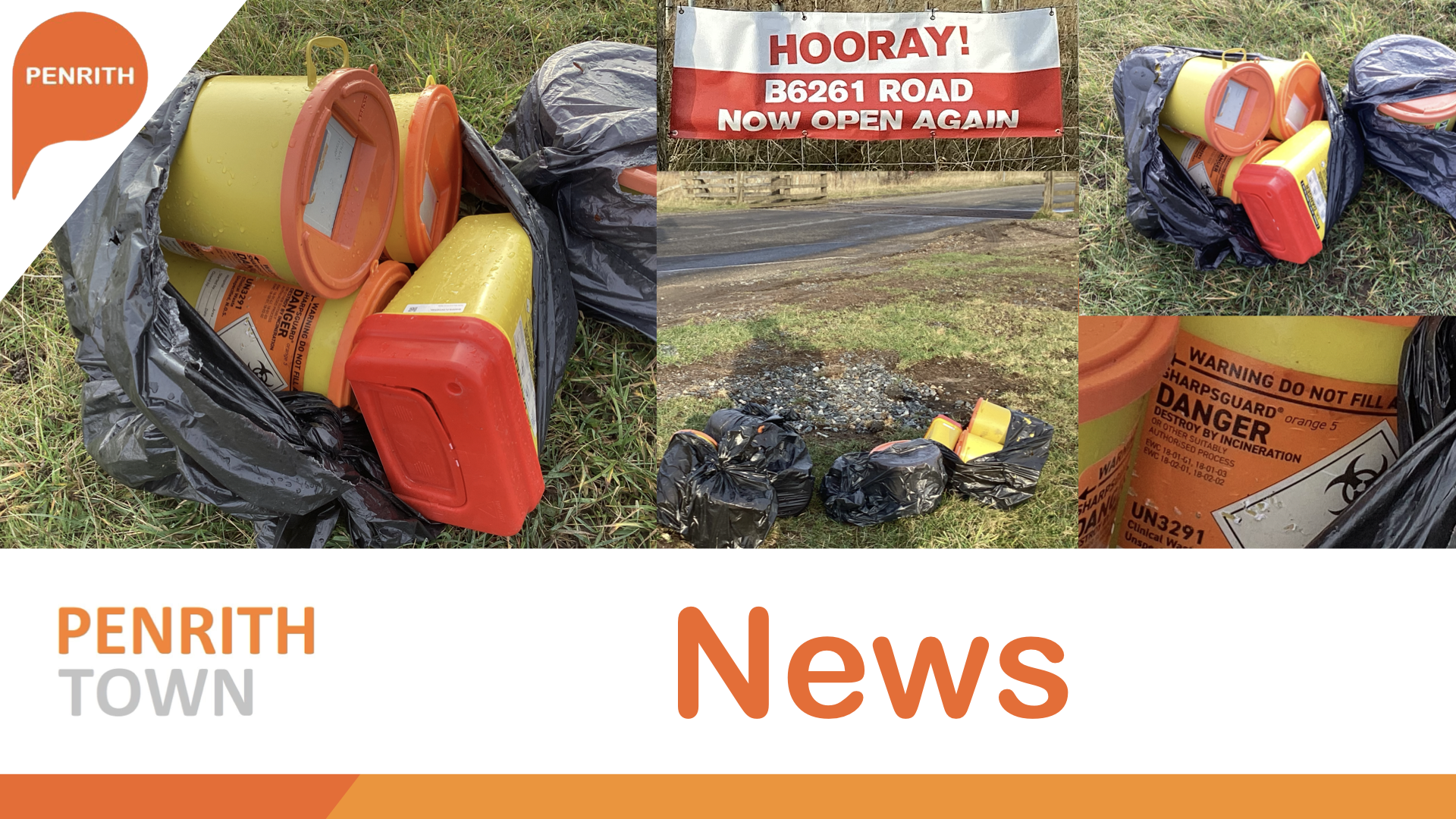 The bags ripped open by wildlife and the weather have exposed approximately twenty containers containing needles and other contaminated materials dumped on the roadside just yards from the M6 at junction 39.